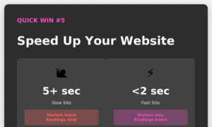 These 7 tactics deliver visible improvements fast – we’re talking days or weeks, not months. They give you momentum and prove that SEO actually works.